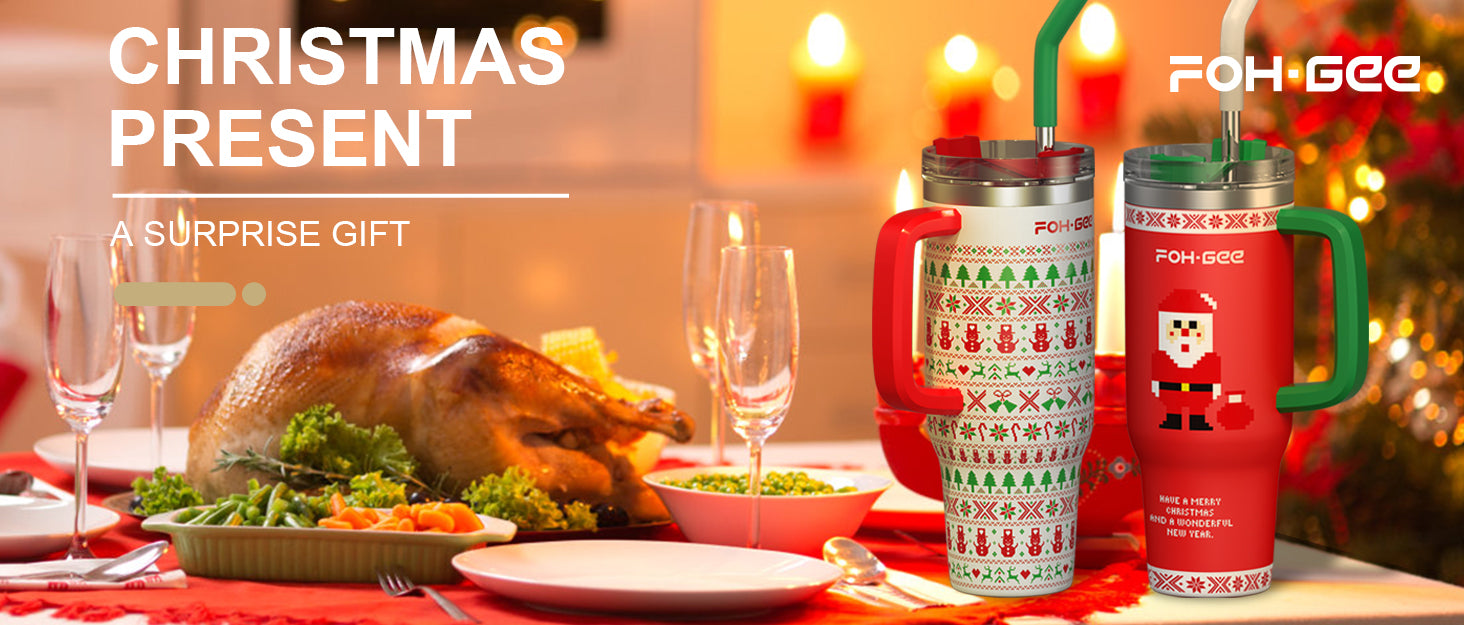 FOHGEE Christmas Style 40oz Stainless Steel Tumbler with Handle - Keep Drinks Cold & Hot All Season! (Red Santa)