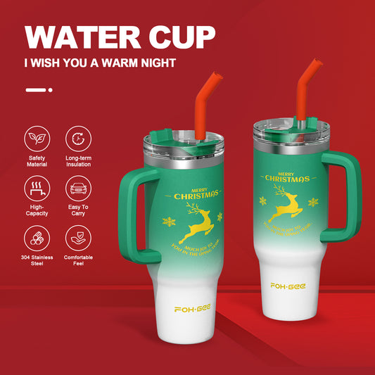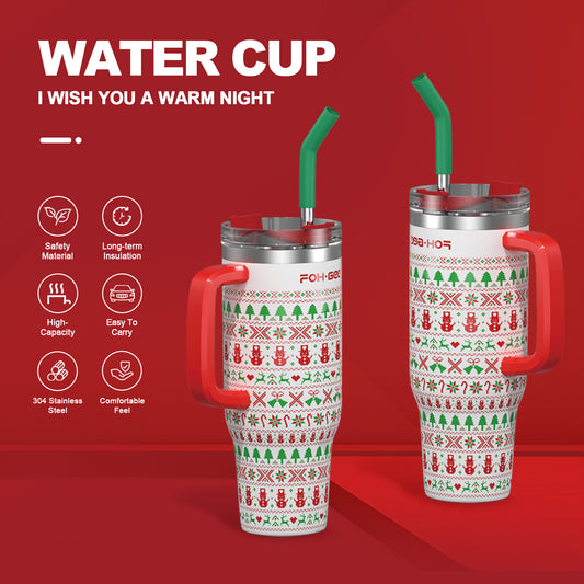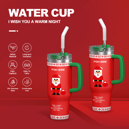 FOHGEE Christmas Style 40oz Stainless Steel Tumbler with Handle - Keep Drinks Cold & Hot All Season! (Red Santa)
